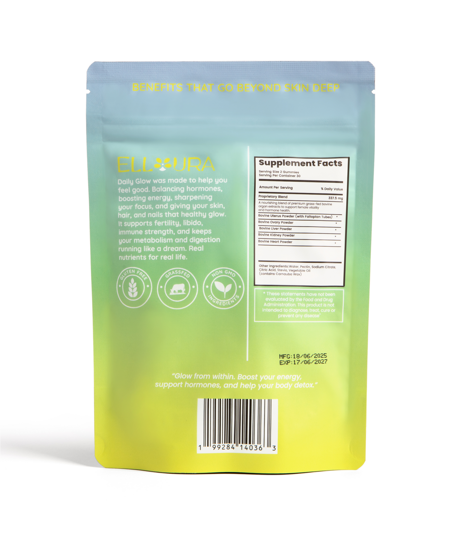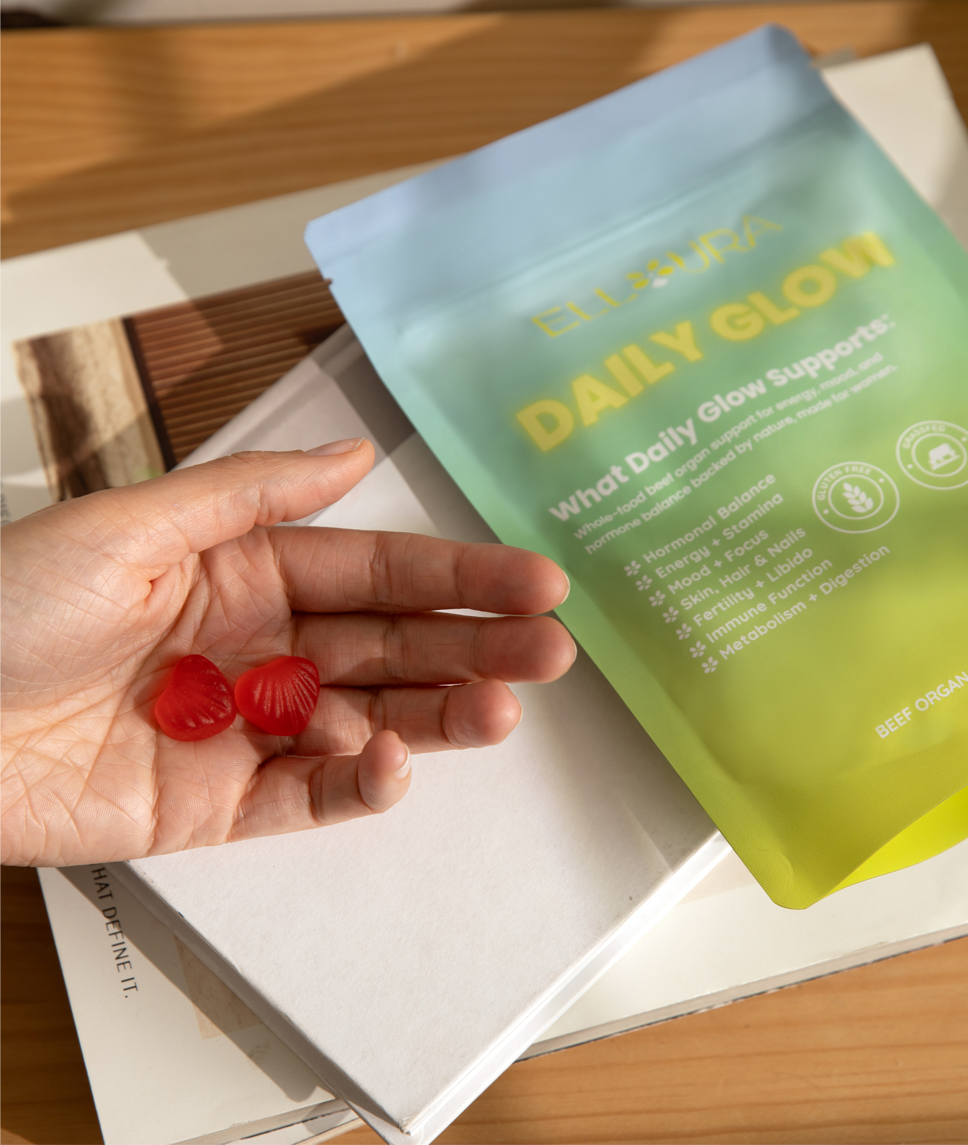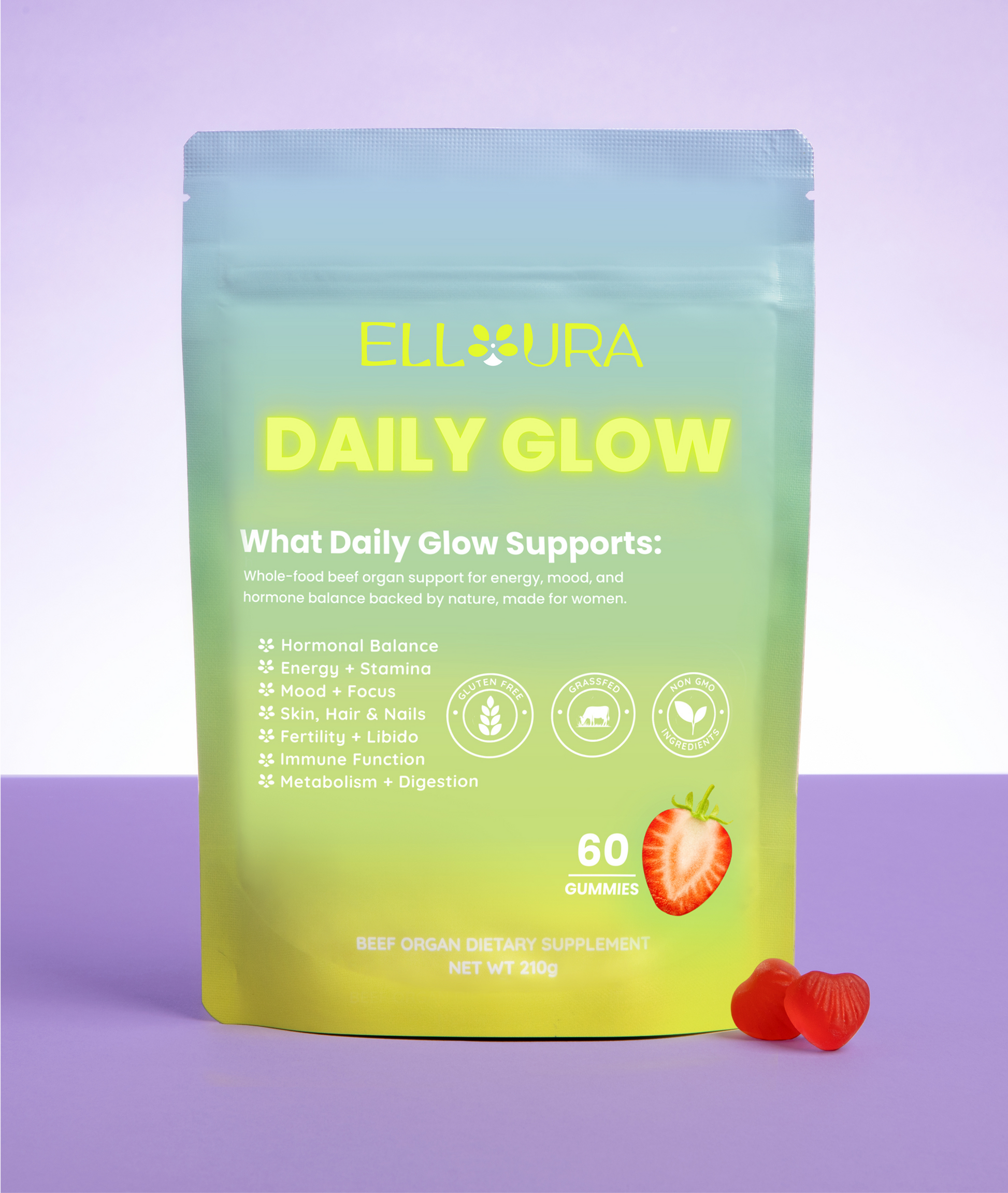 Elloura is a once-a-day gummy made with grass-fed organ blends like liver, heart, and ovaries to support hormones, skin, mood, and energy. Packed with real nutrients, no fillers, and it tastes like candy (not cow).